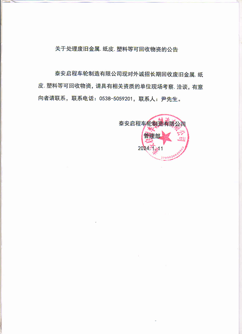 關(guān)于處理廢舊金屬.紙皮.塑料等可回收物資的公告